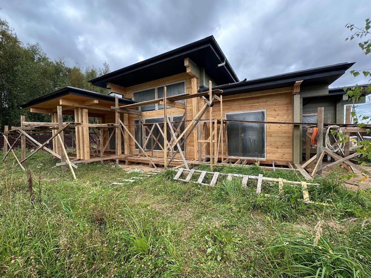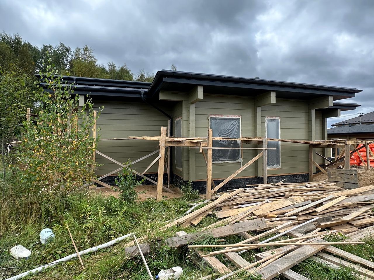 Мы завершили внутреннее окрашивание. Сейчас наша бригада приступила к внешнему окрашиванию дома. В строительстве мы использовали клееный брус собственного производства из сосны сечением 205х270(h) мм. Это полностью индивидуальный проект нашего заказчика. Площадь дома составляет 290,23 м2.