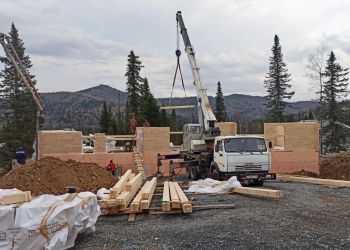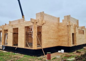 Наша бригада приступила к сборке сруба дома. Дом строится из клееного бруса собственного производства из сосны сечением 205х185 мм. Это индивидуальный проект нашего заказчика. Общая площадь составляет 395,96 квадратных метров.