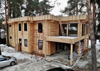 Двухэтажный дом строится по индивидуальному проекту нашего заказчика.В строительстве мы использовали клеёный брус из сосны 205х185мм.Общая площадь дома составляет 533 кв.м.