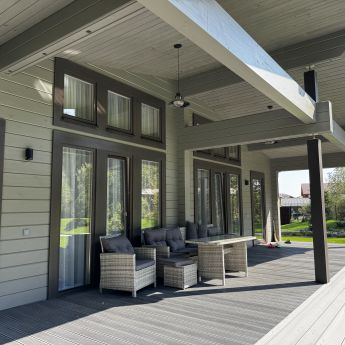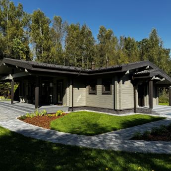 Выбрали типовой проект, но внесли небольшие изменения. Понравилось, что компания пошла навстречу и адаптировала проект под наши пожелания. Все работы выполнены в срок, претензий к качеству нет. Отдельное спасибо за помощь в планировке участка.