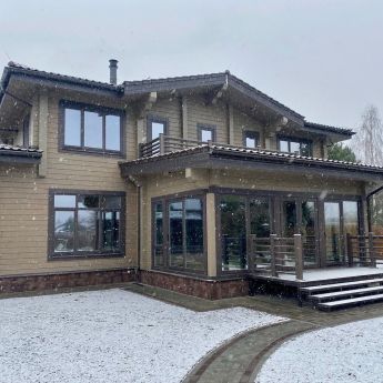 Дом из клееного бруса площадью 295 м2, построен по индивидуальному проекту нашего заказчика.