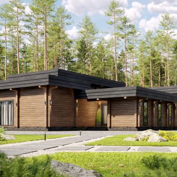 Идеальное решение для проживания всей семьей. Много полезного пространства, которое можно оборудовать под ваши цели. Панорамное остекление добавляет света и уюта в доме. Изюминкой проекта стала плоская разноуровневая крыша, которая прекрасно завершает внешний вид дома.