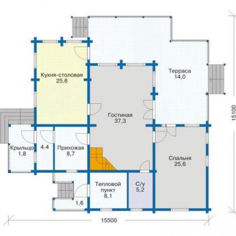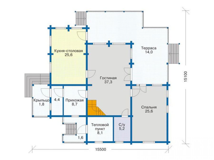 Полезная площадь проекта "Аризона" - 270 кв.м. По проекту "Аризона" - треххэтажное здание, которое также оснащено крыльцом и террасой. Площадь крыльца составляет - 1,8 кв.м., площаль террасы - 14 кв.м.