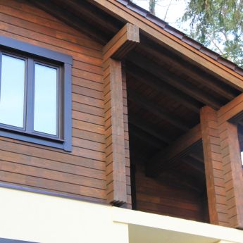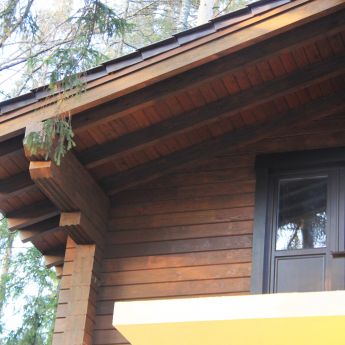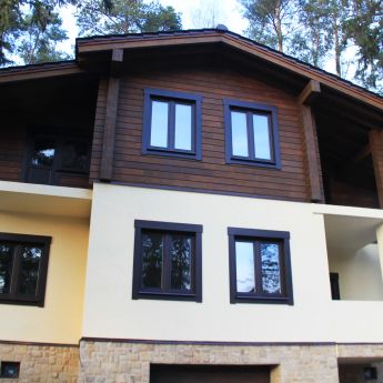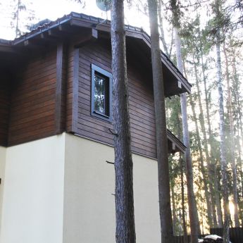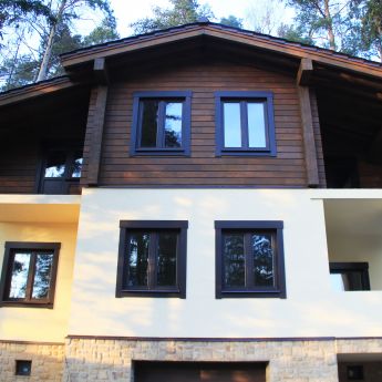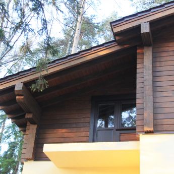 Для возведения второго этажа коттеджа используется клееный брус из лиственницы и кедра.