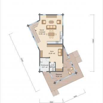 Полезная площадь проекта "Довиль" - 213 кв.м. По проекту "Довиль" - треххэтажное здание, которое также оснащено верандой. Площадь веранды - 16,6 кв.м.