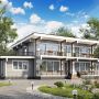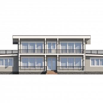 По проекту "Феникс" - двухэтажное здание, которое также оснащено двумя большими открытыми террасами (выход на которые происходит через спальни на втором этаже).