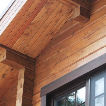 Для строительства выбран комбинированный клееный брус из лиственницы и кедра, изготовленный на нашем производстве.