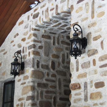 Первый этаж дома каменный, второй выполнен из клееного бруса.
