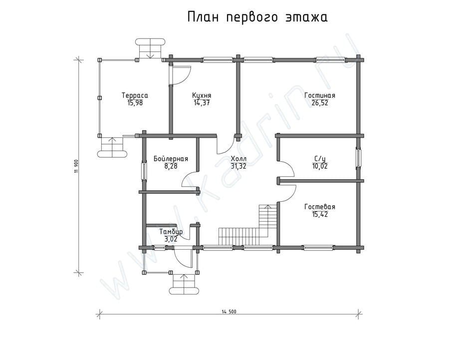 Базовые планировки Дом из клееного бруса Рокфорд 1