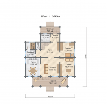 Полезная площадь проекта "Зерфаус" - 224 кв.м. По проекту "Зерфаус" - двухэтажное здание, которое также оснащено крыльцом и террасой. Площадь крыльца составляет - 7,57 кв.м., площадь террасы - 18,07 кв.м.