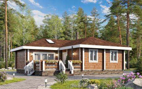 Одноэтажная баня из клееного бруса, полезная площадь которого составляет 120 кв. м.